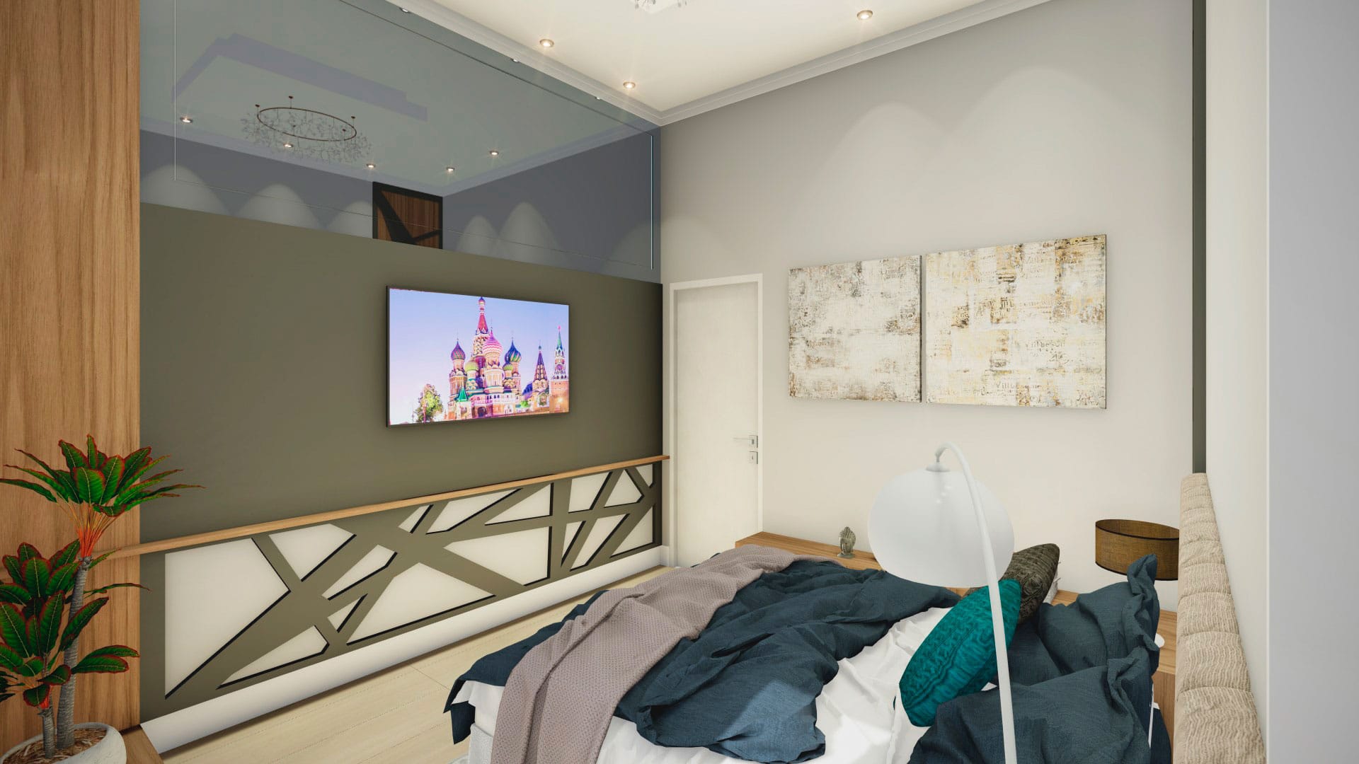 Esse projeto tem o mérito de ser imponente, mas sem perder a racionalidade. Com uma fachada moderna em alvenaria, madeira e vidro o seu mestre de obras não terá grandes dificuldades em construir esse sobrado, uma vez que as paredes são paralelas e os beirais são uma continuação da laje, diminuindo significativamente os custos. Por dentro temos uma espaçosa área de convívio, além de 3 suítes, todas com closet. Dando maior privacidade e conforto no dia a dia.